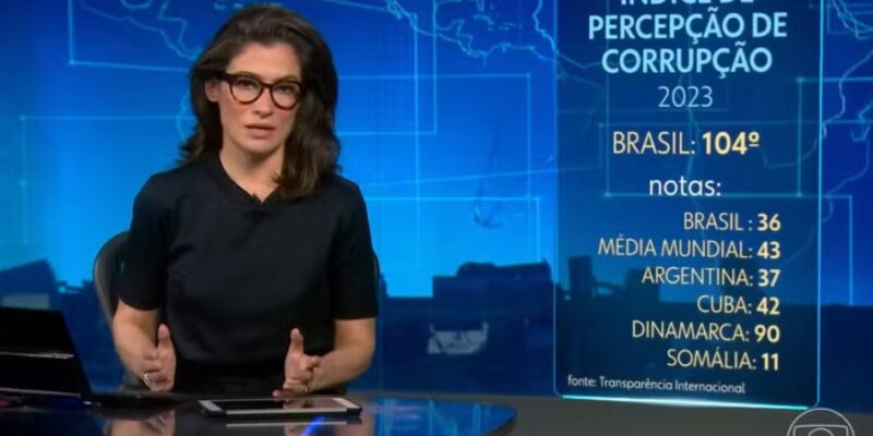 O Brasil caiu dez posições no índice de percepção da corrupção de 2023 para posição de número 104 entre 180 países. O ranking mede como especialistas e empresários veem a integridade do setor público.