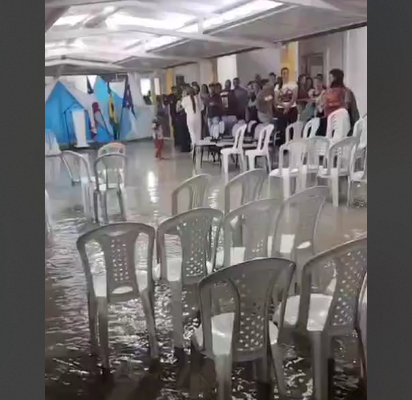 Escola que do bairro Jardim Valéria que seria inaugurada é inundada pelas fortes chuvas que estão afetando a região. Isto também mostra asfalta de planejamento para a construção de bens públicos, sem escoamento adequado.