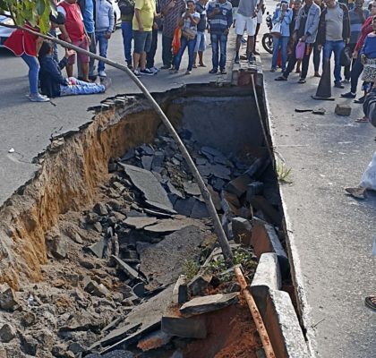 Na manhã desta terça-feira (11), uma enorme cratera surgiu na Avenida Crescêncio Silveira, uma das vias mais movimentadas de Vitória da Conquista. Imagens compartilhadas mostram que uma mulher ficou ferida no incidente. O Serviço de Atendimento Móvel de Urgência (SAMU) foi acionado para prestar socorro. Segundo especialistas, o problema provavelmente está relacionado aos impactos das chuvas. Eles também alertam que outros pontos de Vitória da Conquista podem enfrentar situações similares, exigindo atenção redobrada da Defesa Civil.
